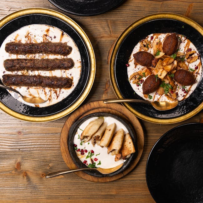 - Signature dishes: Mezze selections (hummus, baba ghanoush, labneh), kebbeh nayyeh (finely minced raw meat), shawarma, stuffed vine leaves (waraq enab) and syrupy sweets such as baklava and knafeh.
