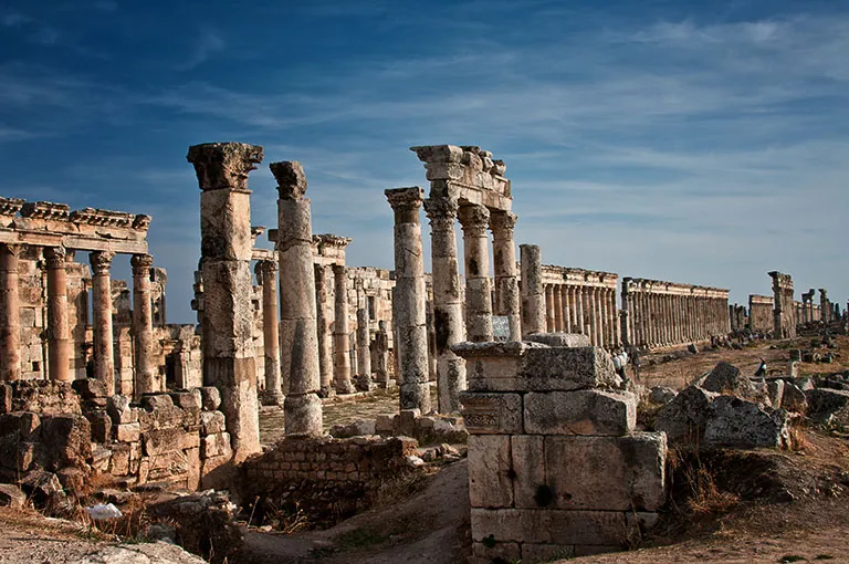 Located in the heart of the Syrian desert, Palmyra was once a prosperous caravan city and a key trading post of the Roman Empire. Its monumental colonnades, temples, and theater showcase a blend of Greco-Roman and Eastern architecture.
